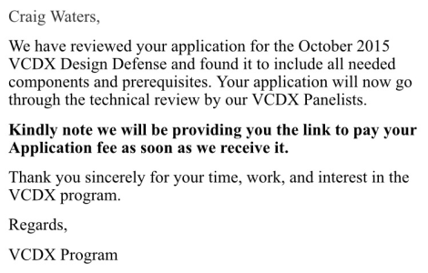 I also got an email from the #VCDX Program to confirm my submission had been accepted and that I’d progressed to the technical review stage (prior to defence).