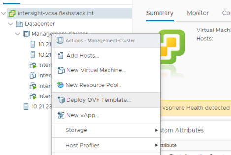 Right-click on the Cluster/Host object and select Deploy OVF Template.