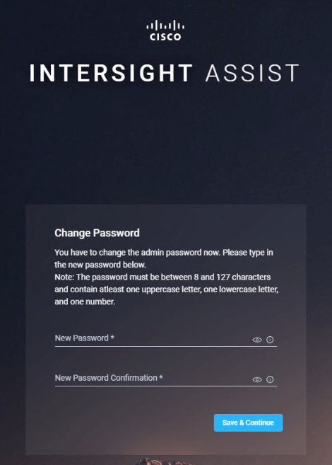 Firstly we need to change the password of the appliance, click Save & Continue.