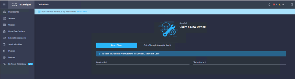 Login to https://intersight.com and in the Devices tab on the left select Claim a new Device.