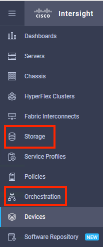 You can now see the Intersight Assist Appliance has been connected. What’s also interesting is that if you look at the menu on the left there are a few new options available Storage and Orchestration.