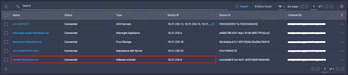 Again, once the Claim process has completed we can see the VMware vCenter server listed in Devices.