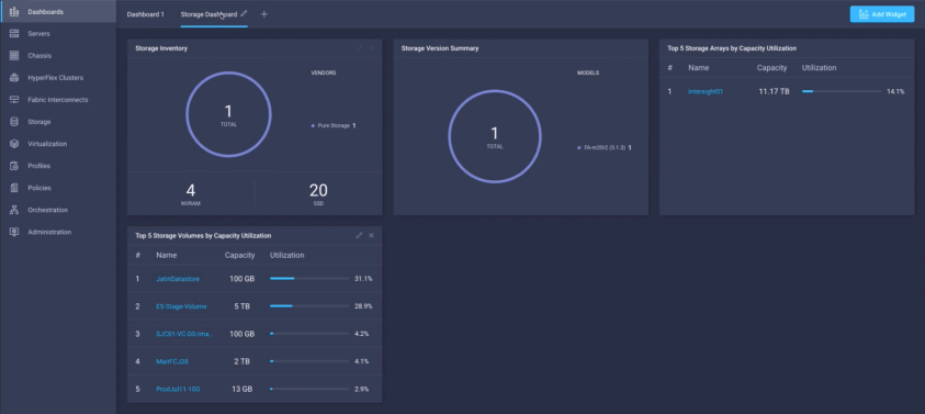 - Add storage device related widgets to a Dashboard – You can add and rearrange widgets related to storage devices including capacity and inventory information.
