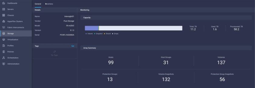 So it’s great to be able to announce the first step in this integration with the GA release of our FlashArray Connector! In this post let’s review the features offered in this release and also provide details on the license changes in Cisco Intersight: